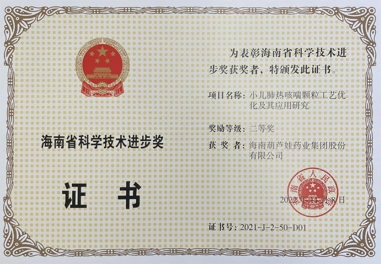 为此,小儿肺热咳喘颗粒的制备方法获得了第二十一届中国专利优秀奖(2019年),专利申请号:ZL201010134951,此次作为专利技术的应用,获得了2021年度海南省科学技术进步奖二等奖。在此之前,LEwin乐玩牌小儿肺热咳喘颗粒还多次被授予“临床价值中成药品牌”、“中国连锁药店最具合作价值单品”,荣登“中国医药品牌榜”。